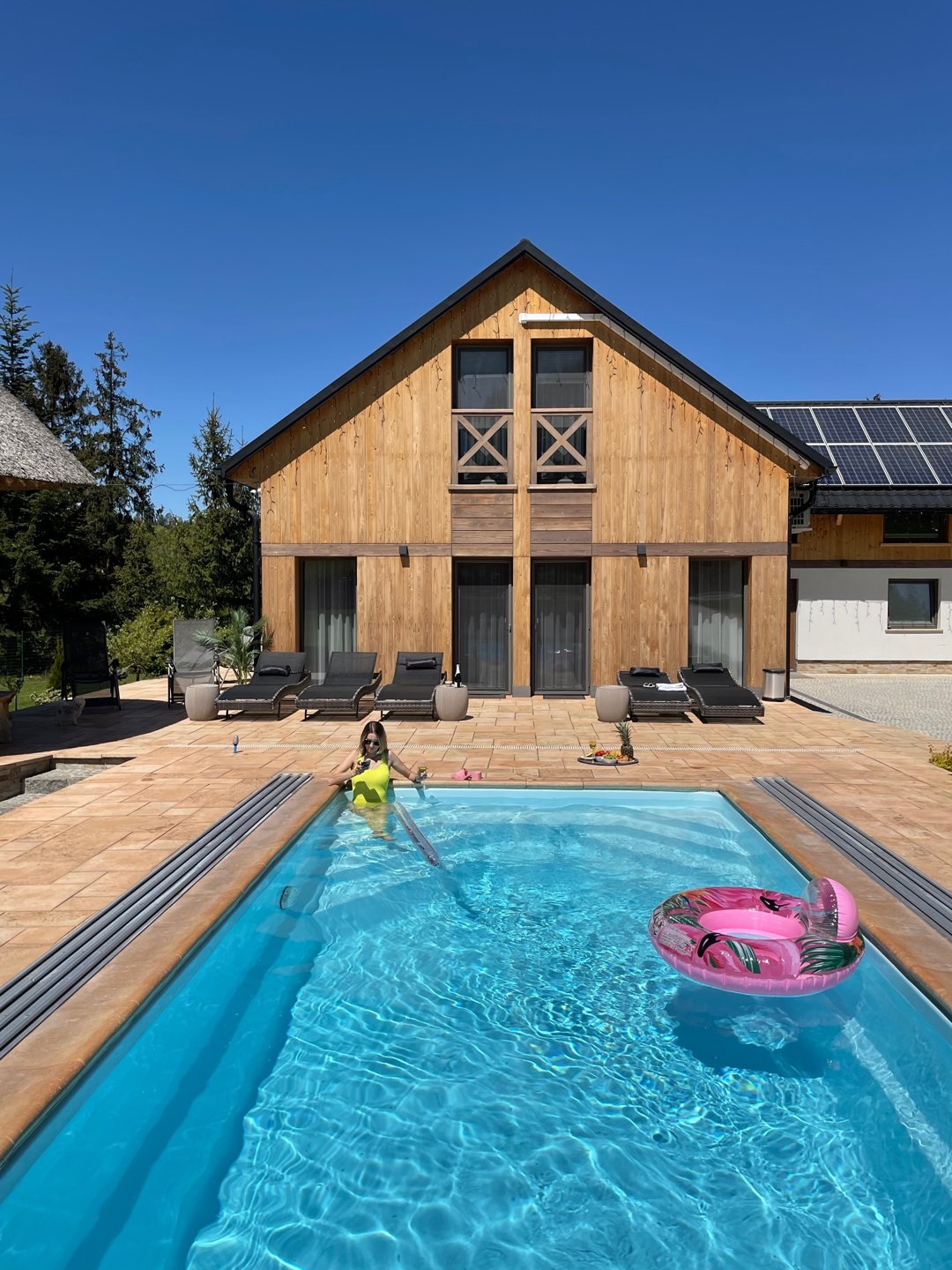 - Podgrzewany basen (czynny od maja do września) – idealny na letnie kąpiele i relaks w wodzie.